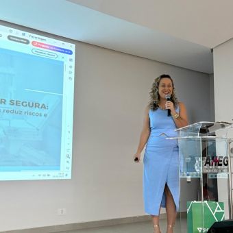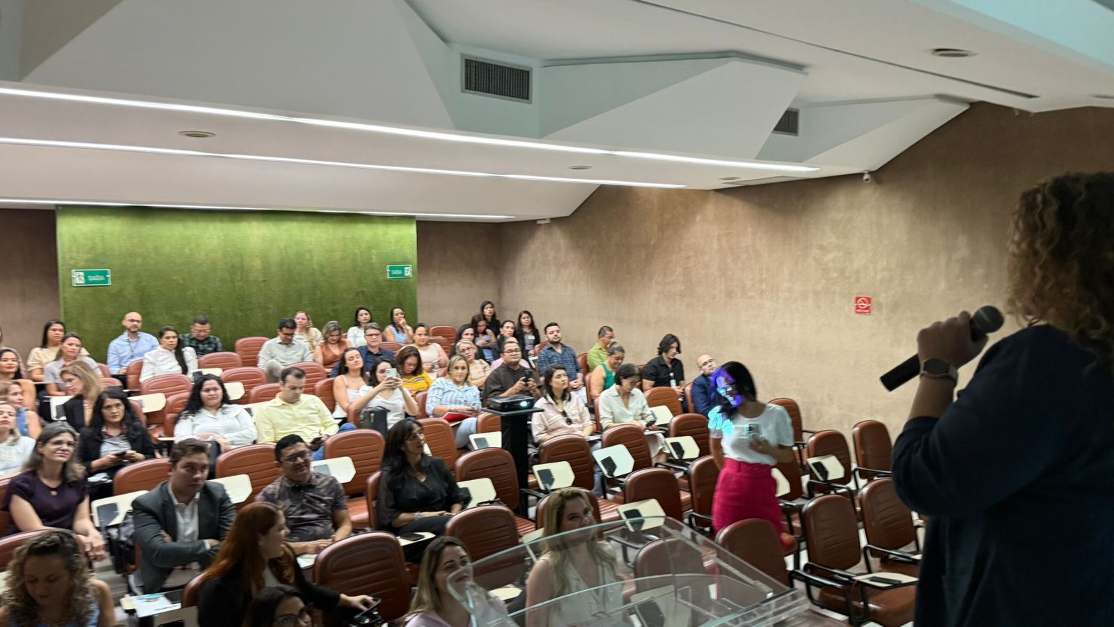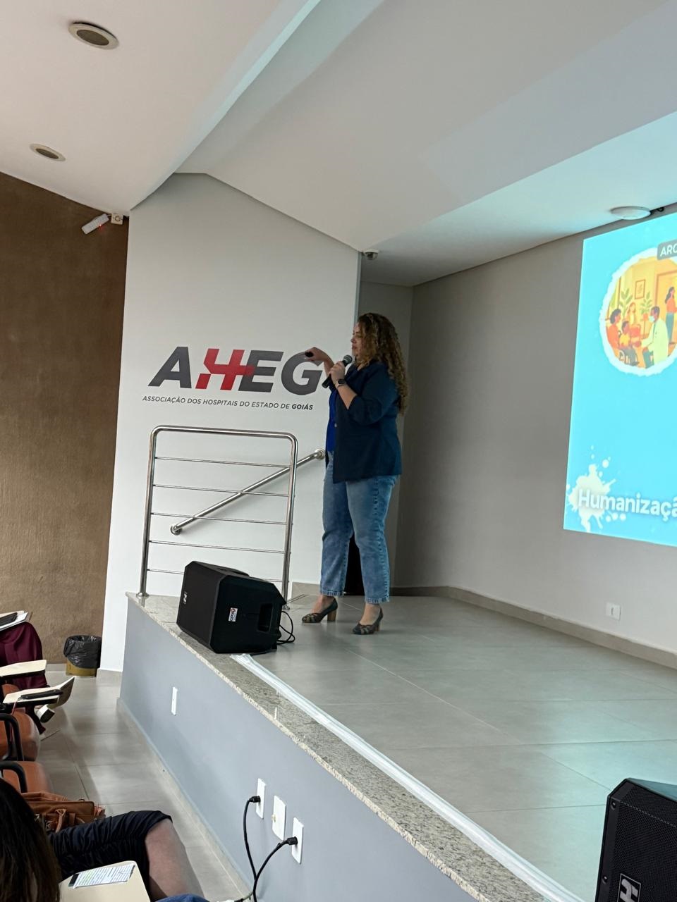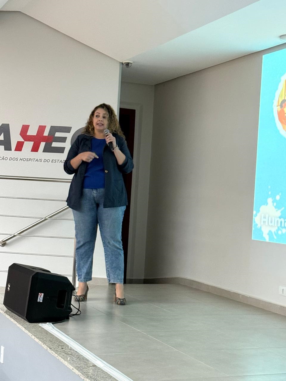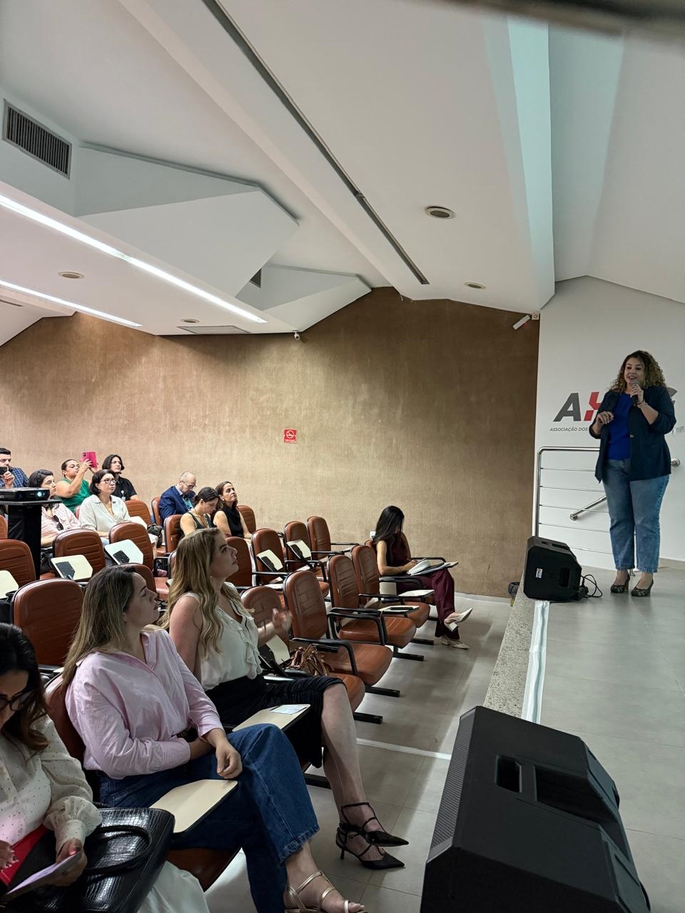 Em seguida, Amanda Marinho, diretora regional da ABDEH em Goiás e sócia-proprietária da Maral & Souza Arquitetura Saudável, apresentou a palestra "Infraestrutura Hospitalar Segura: como o atendimento às normas sanitárias reduz riscos e fortalece a gestão".