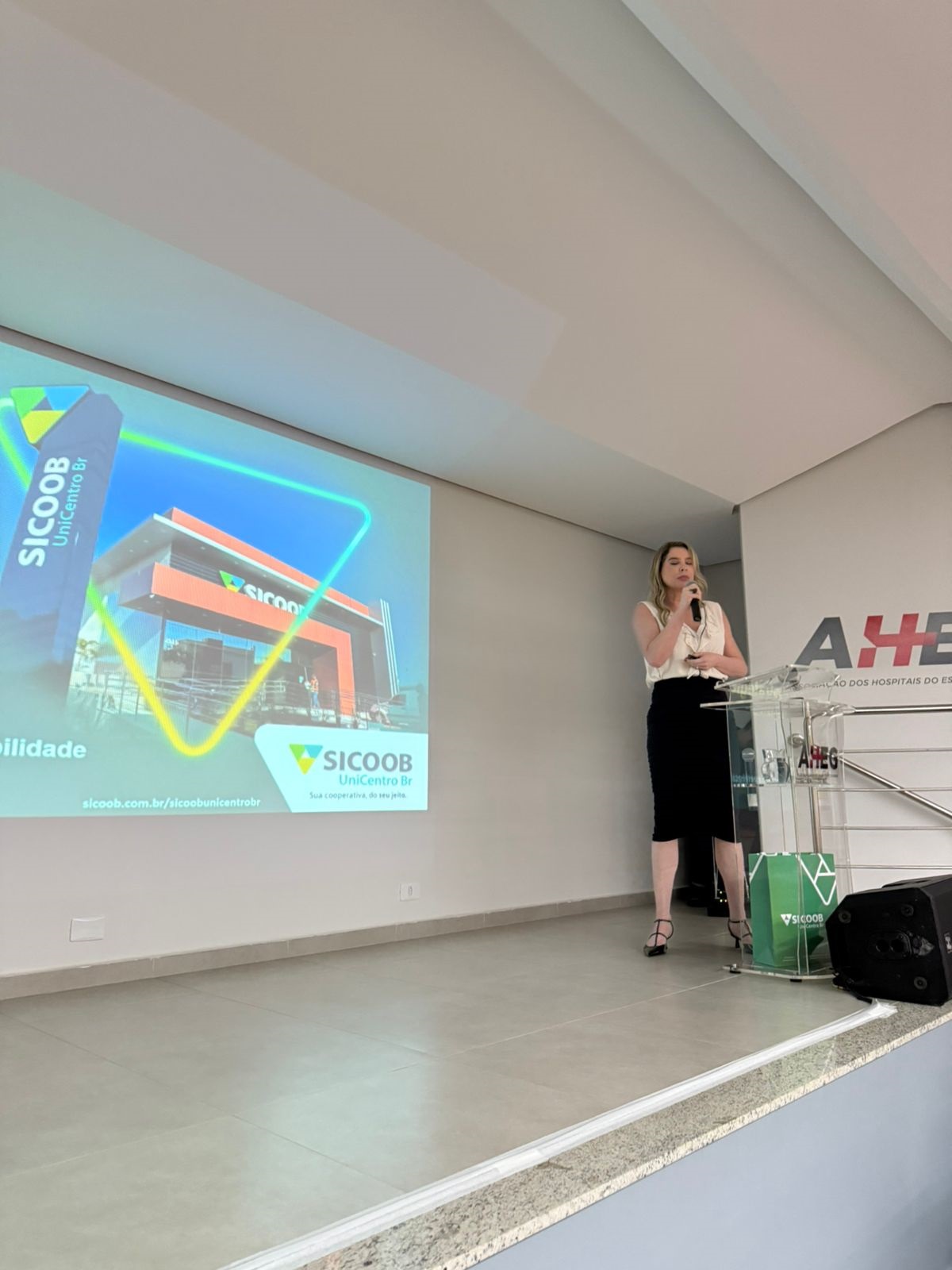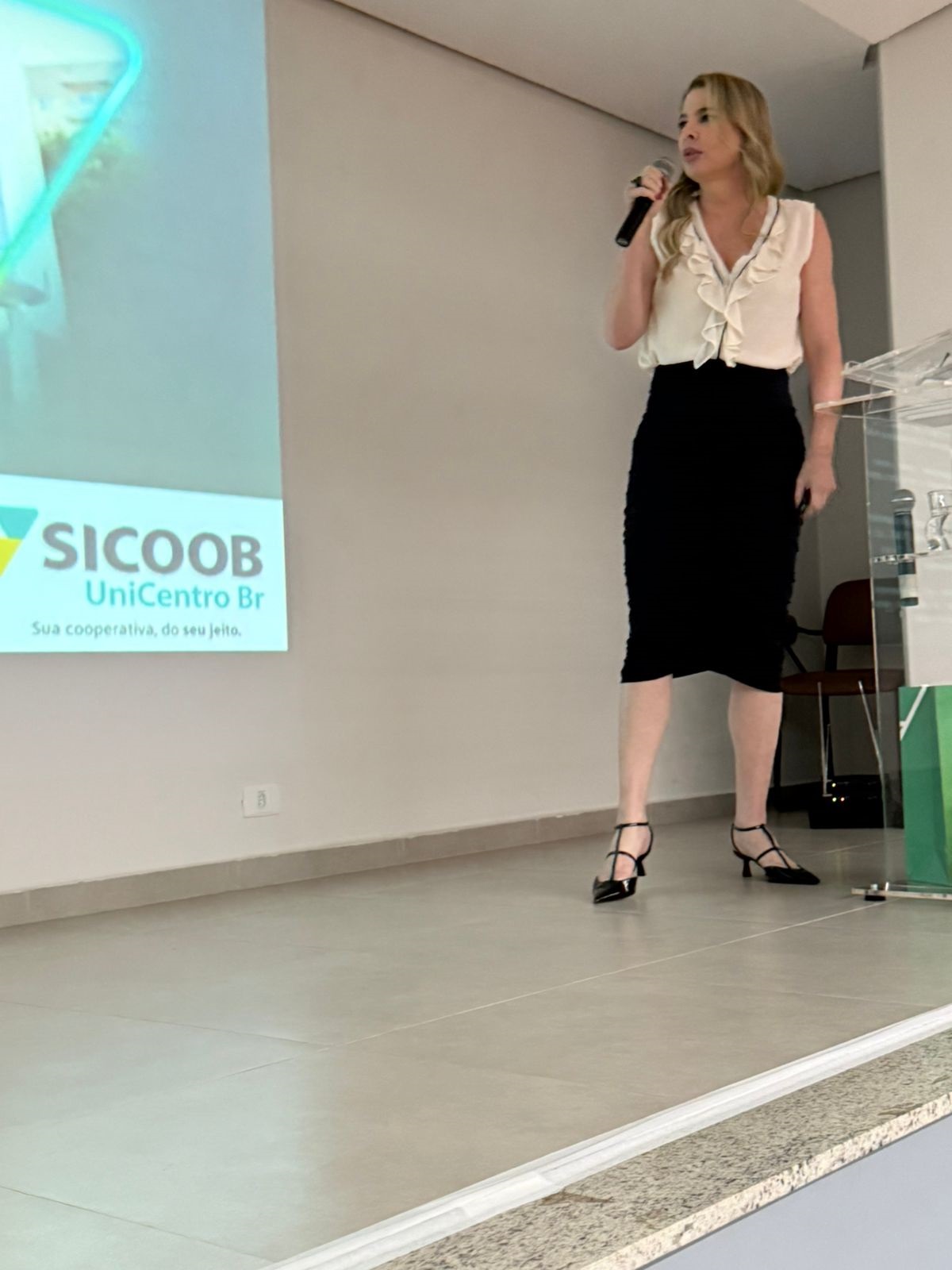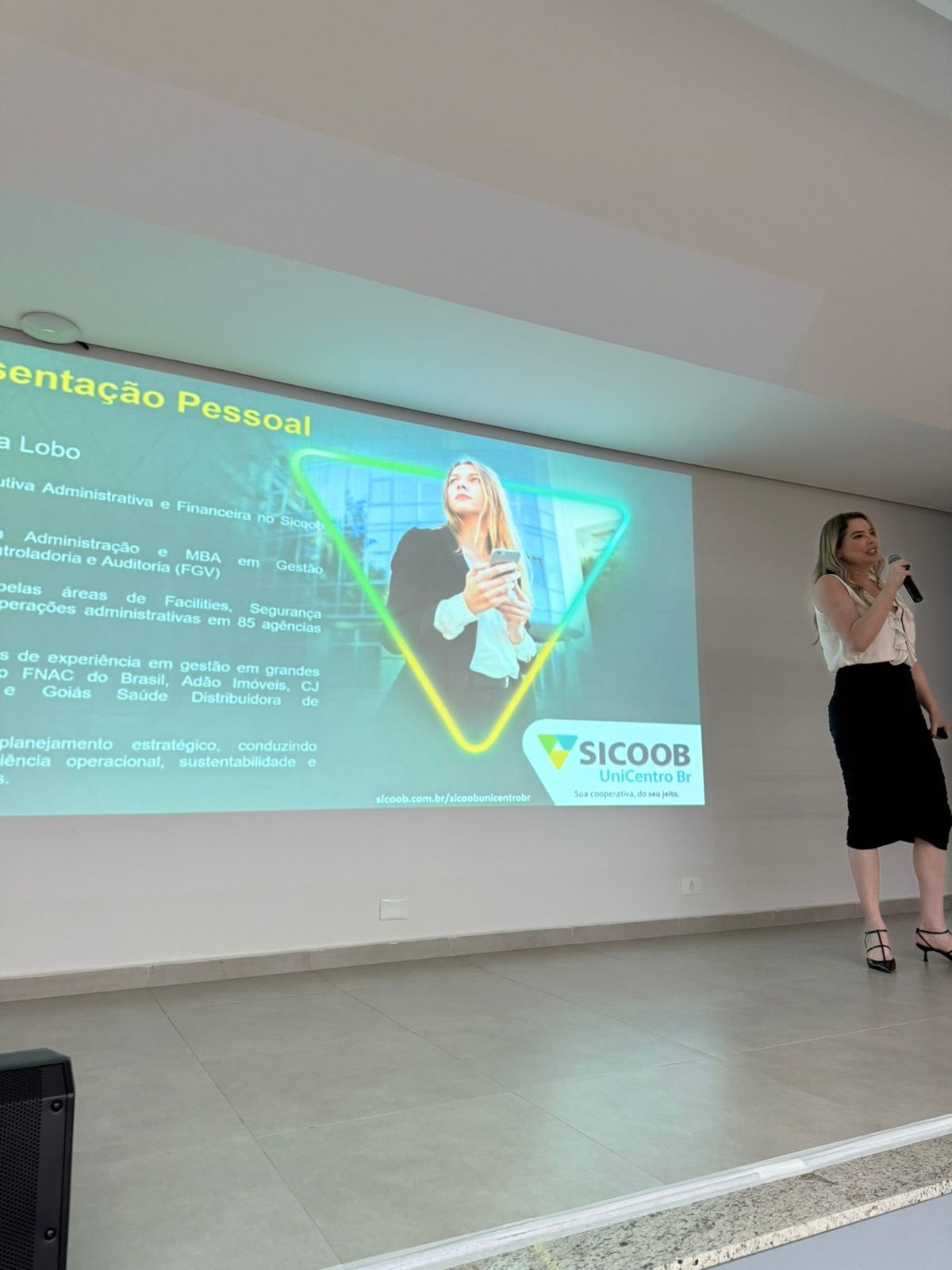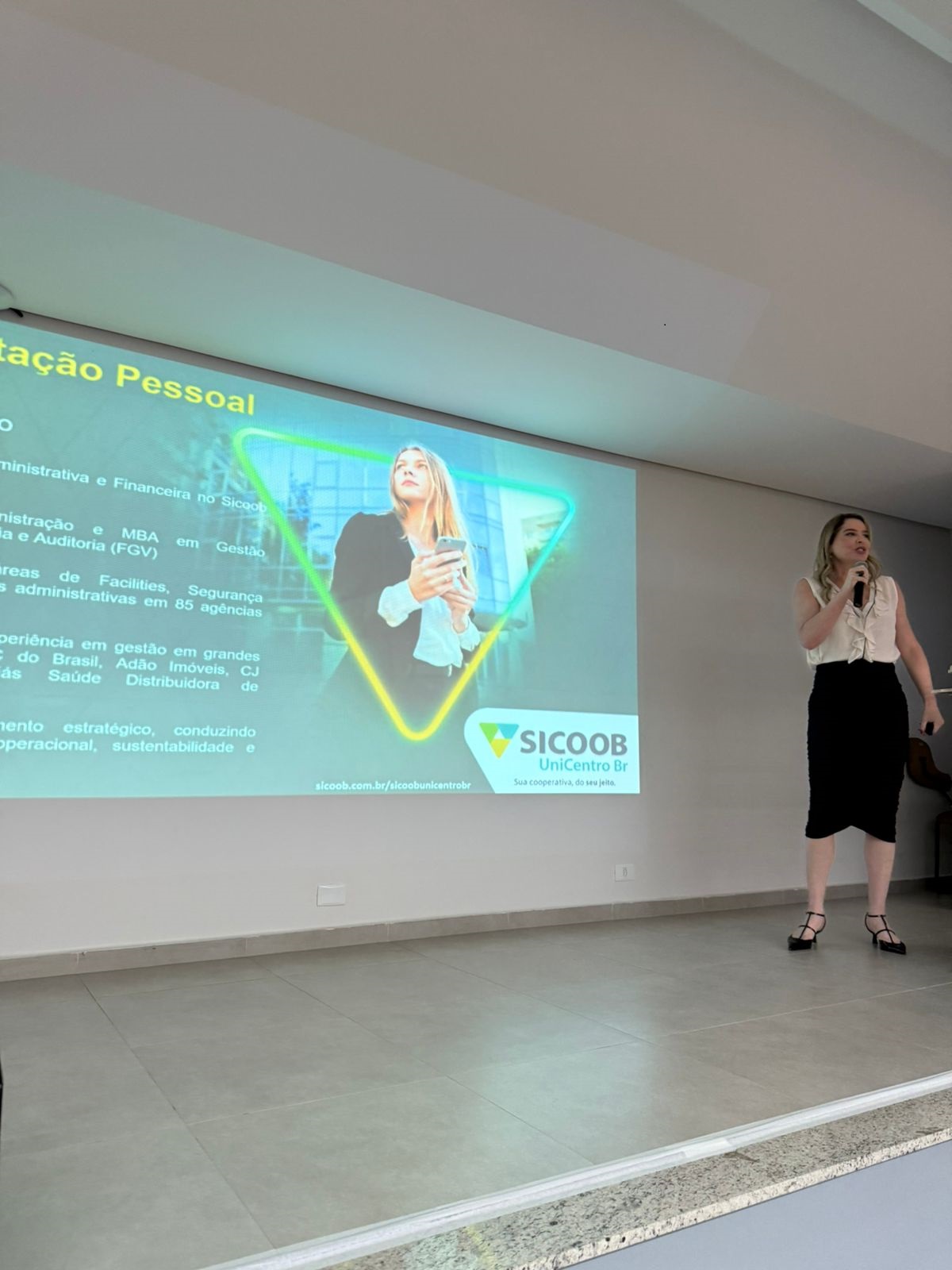 Encerrando o ciclo de palestras, Ana Paula Rodrigues Lobo, gerente executiva administrativa e financeira do Sicoob UniCentro Br, apresentou o tema "Gestão Estratégica de Espaços: Eficiência, Experiência e Sustentabilidade".