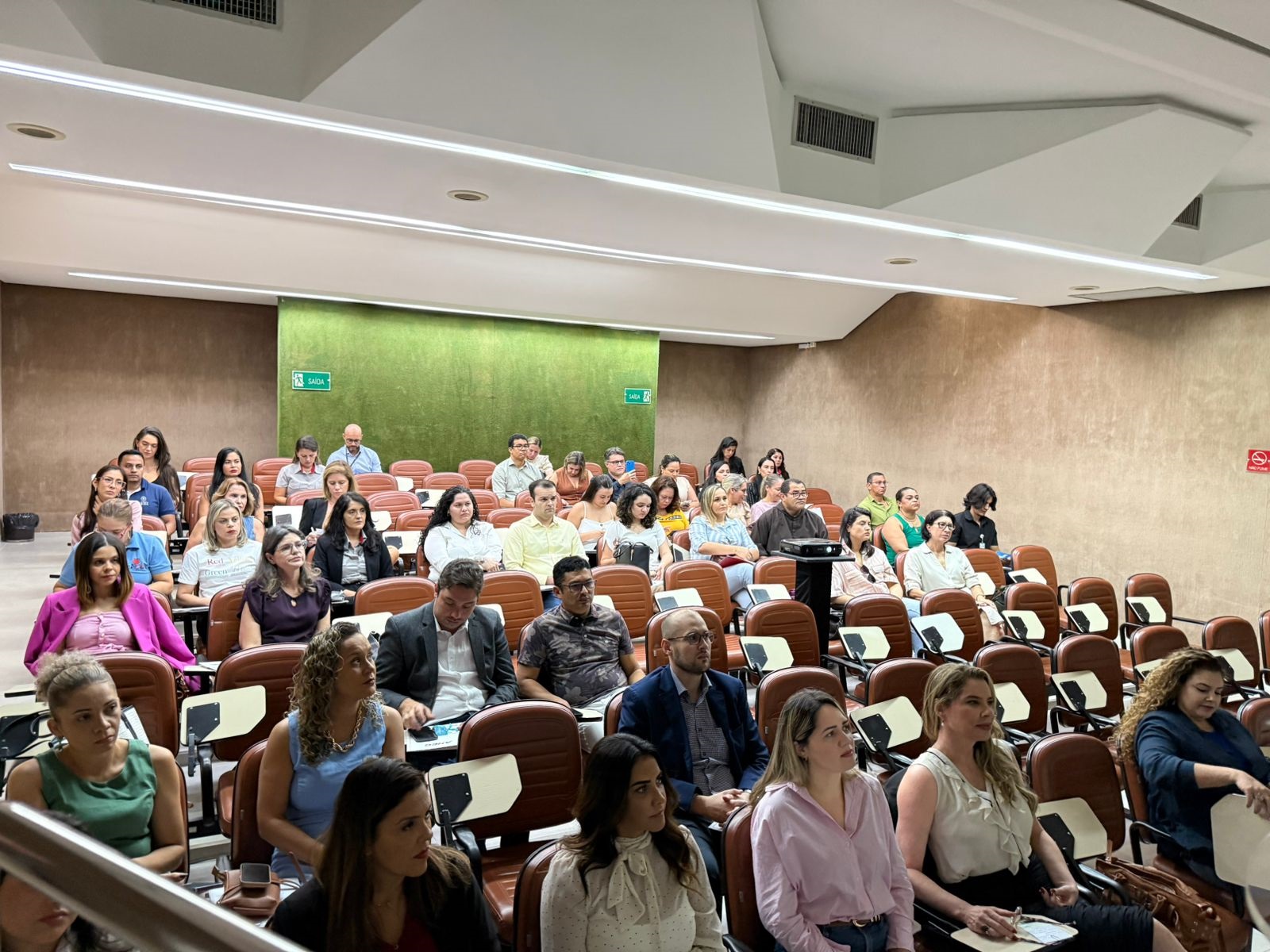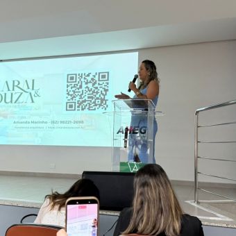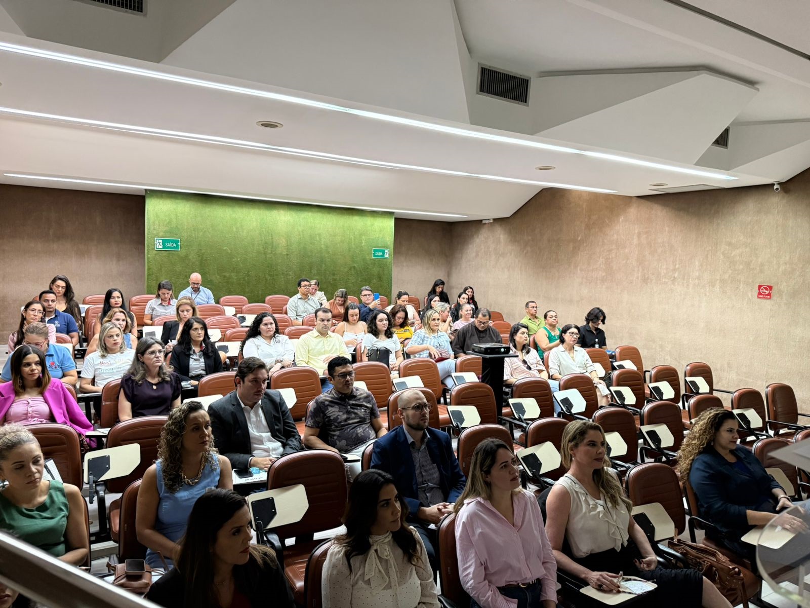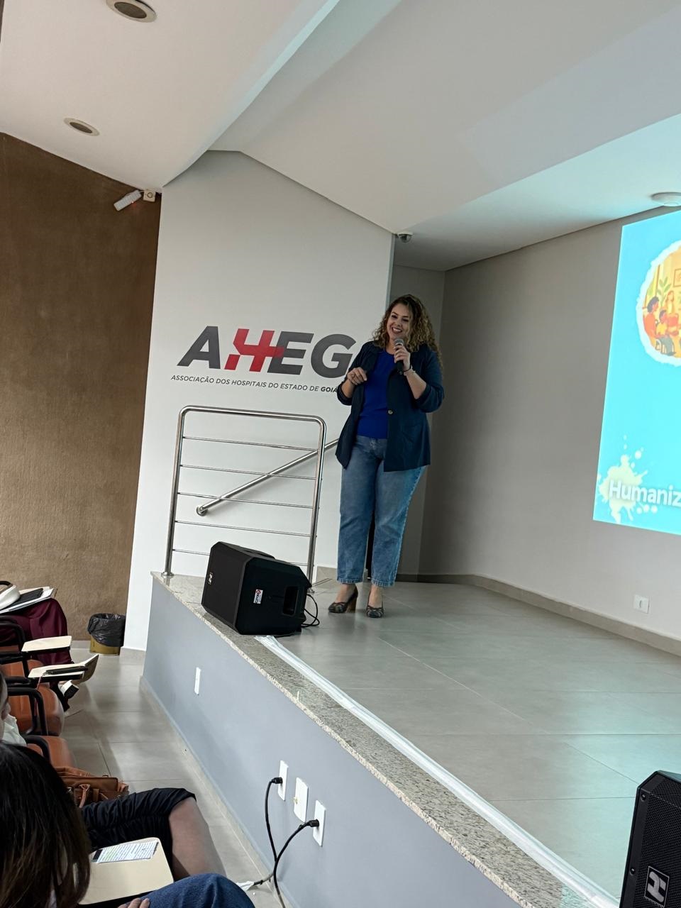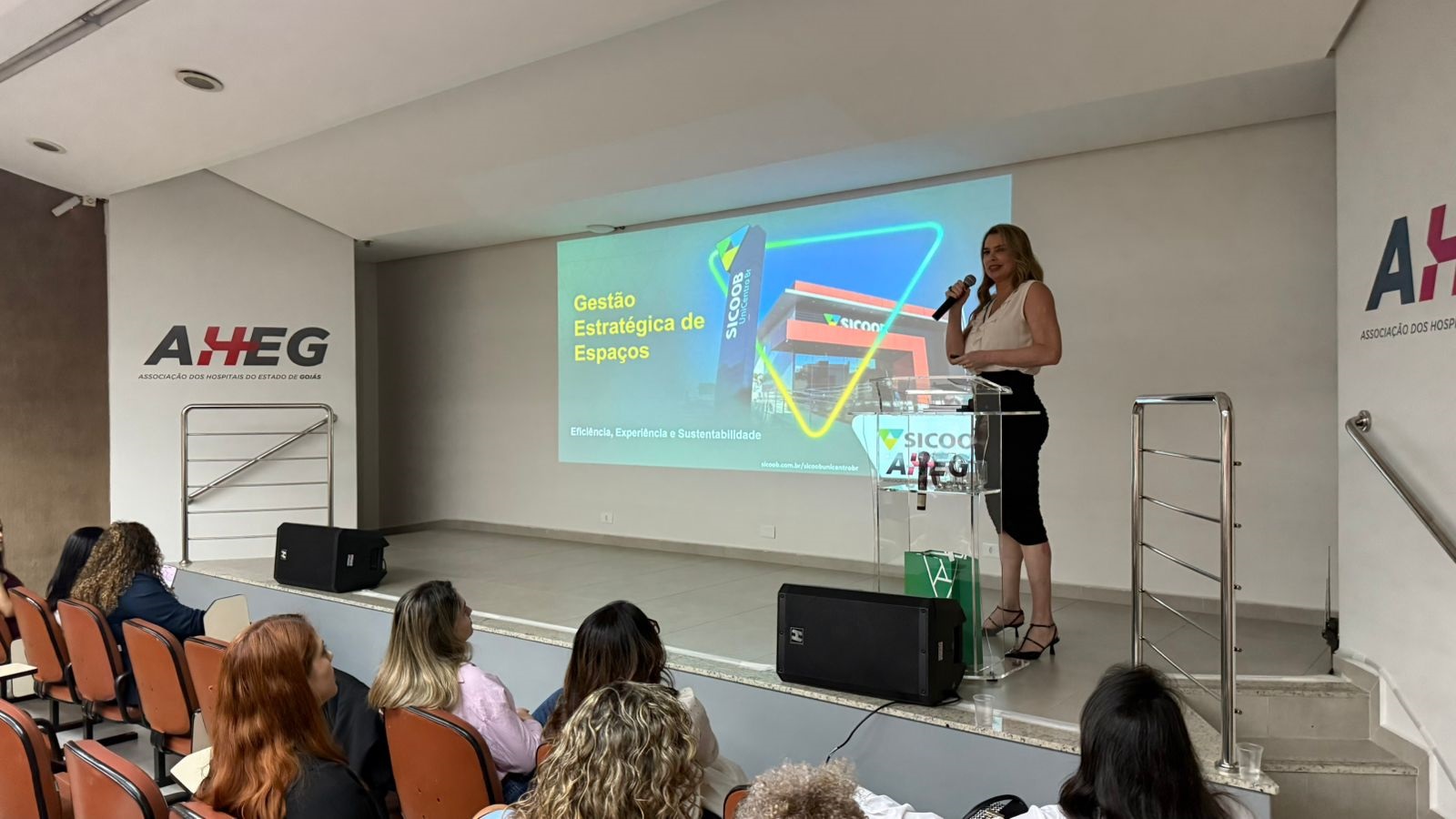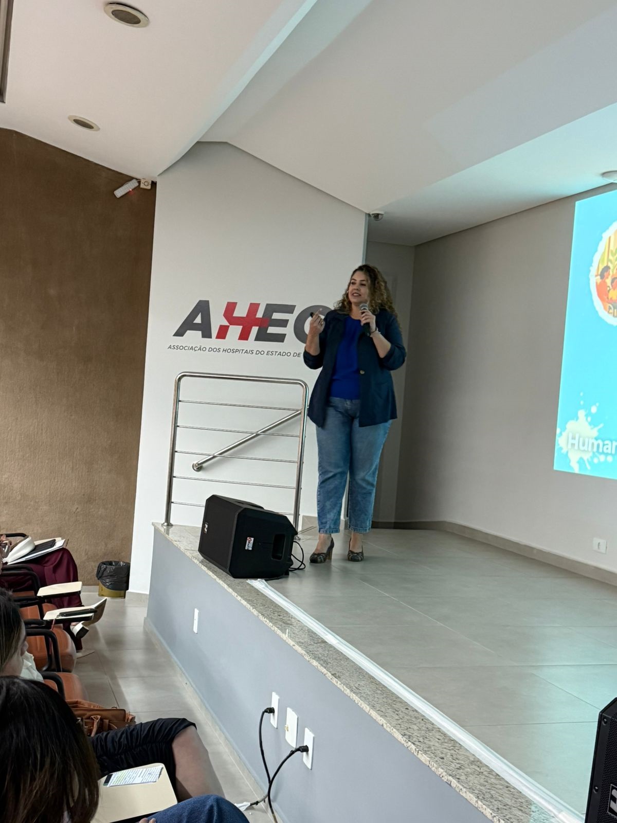 Em seguida, Amanda Marinho, diretora regional da ABDEH em Goiás e sócia-proprietária da Maral & Souza Arquitetura Saudável, apresentou a palestra "Infraestrutura Hospitalar Segura: como o atendimento às normas sanitárias reduz riscos e fortalece a gestão".