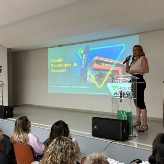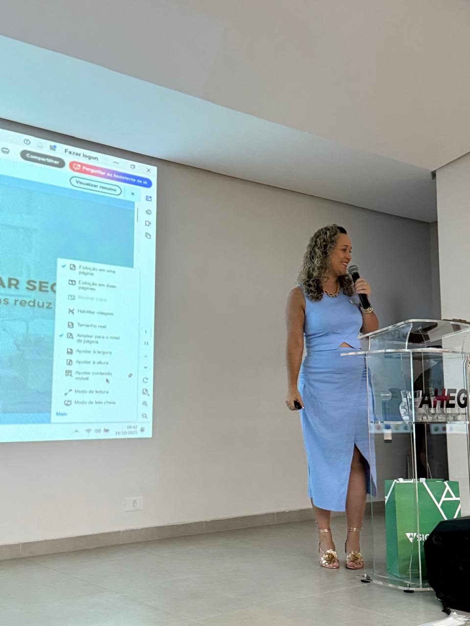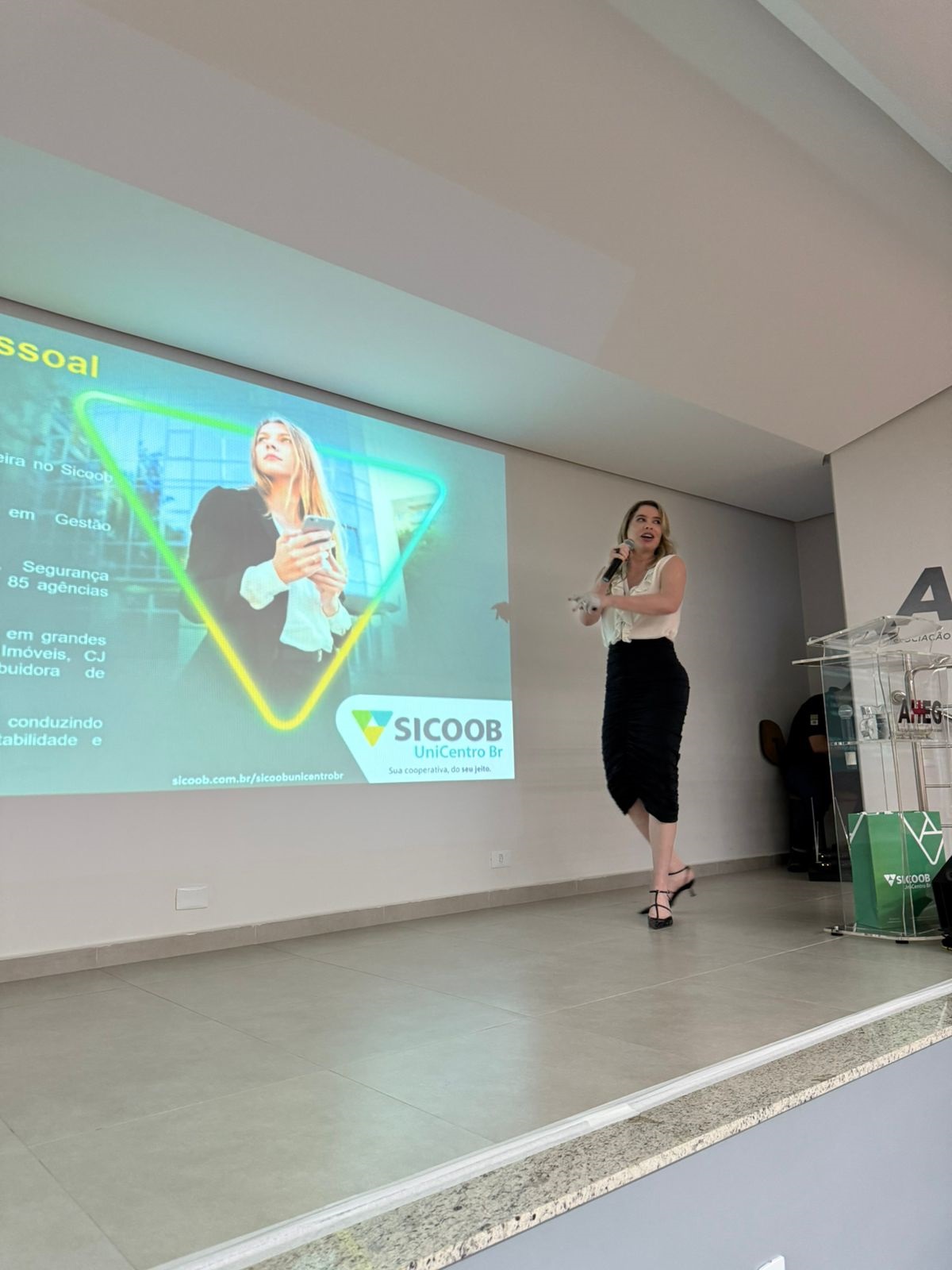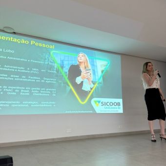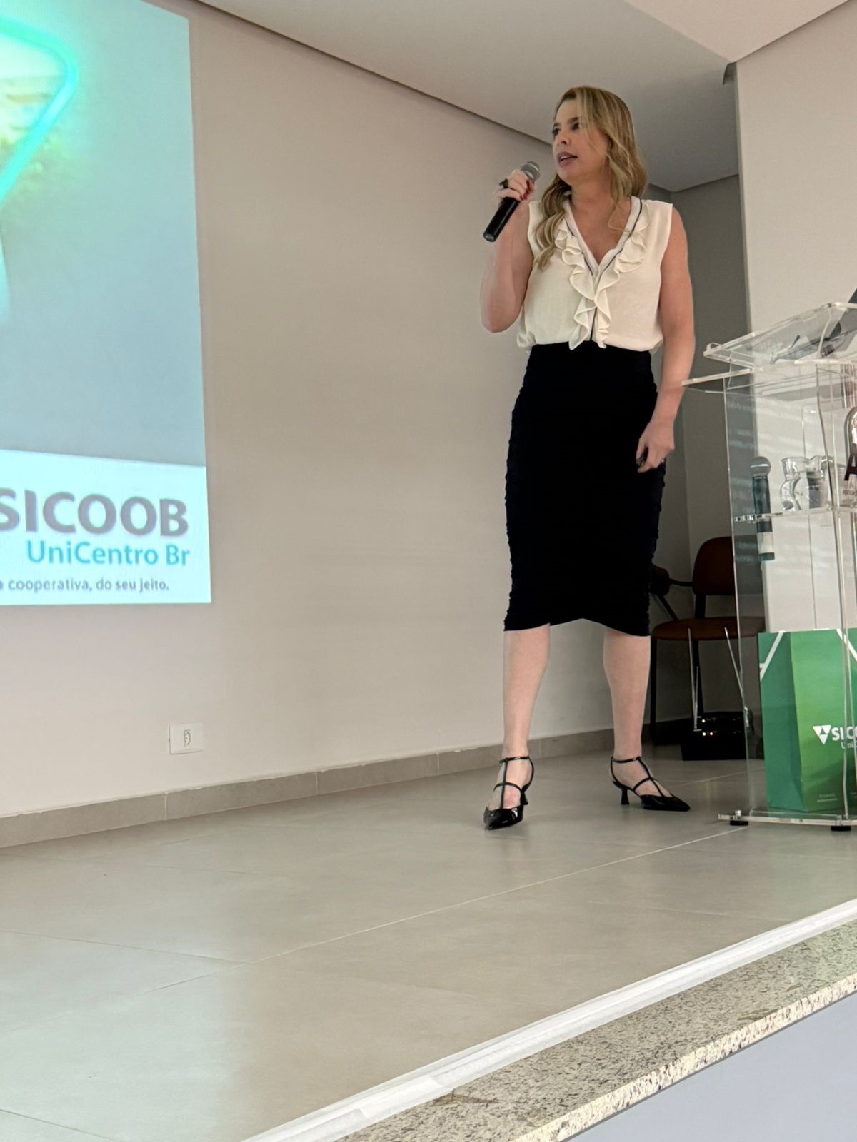 Encerrando o ciclo de palestras, Ana Paula Rodrigues Lobo, gerente executiva administrativa e financeira do Sicoob UniCentro Br, apresentou o tema "Gestão Estratégica de Espaços: Eficiência, Experiência e Sustentabilidade".