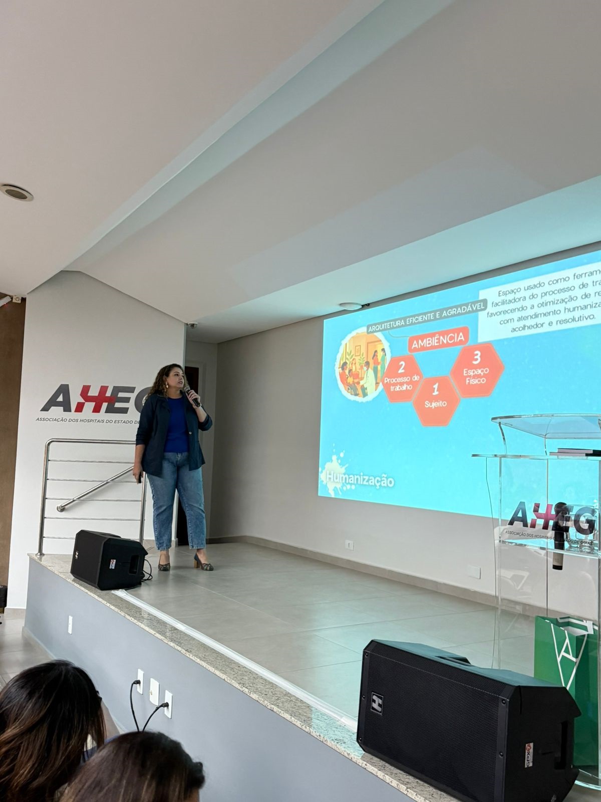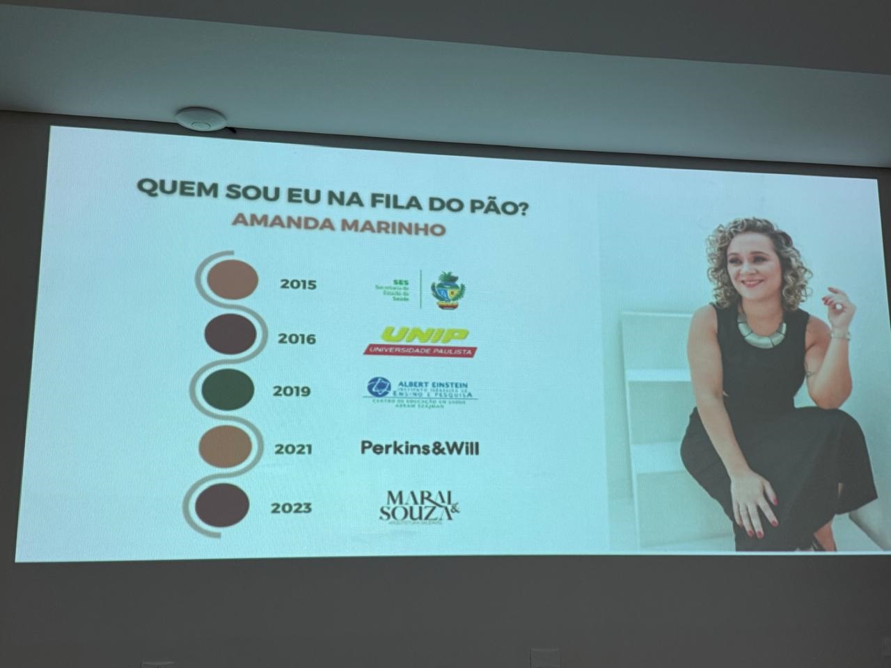 Thalita trouxe uma reflexão sobre o papel do espaço físico como facilitador do cuidado humanizado, destacando a evolução dos projetos hospitalares — que hoje se voltam não apenas para o tratamento, mas também para a promoção da saúde e a qualidade de vida, com foco na prevenção e na experiência do paciente.