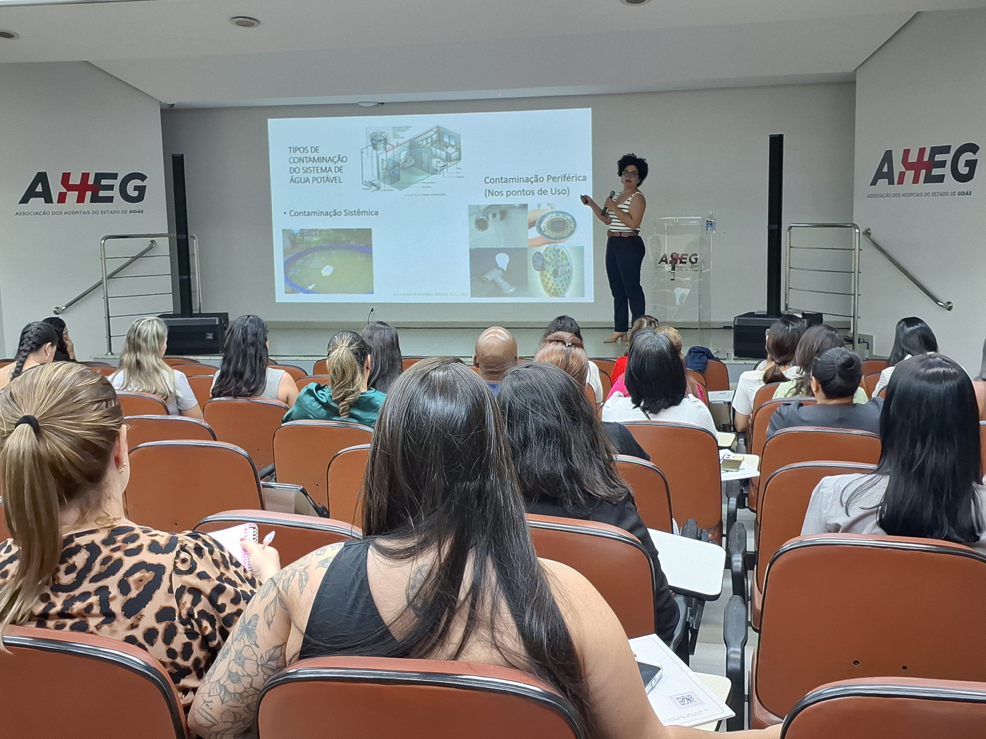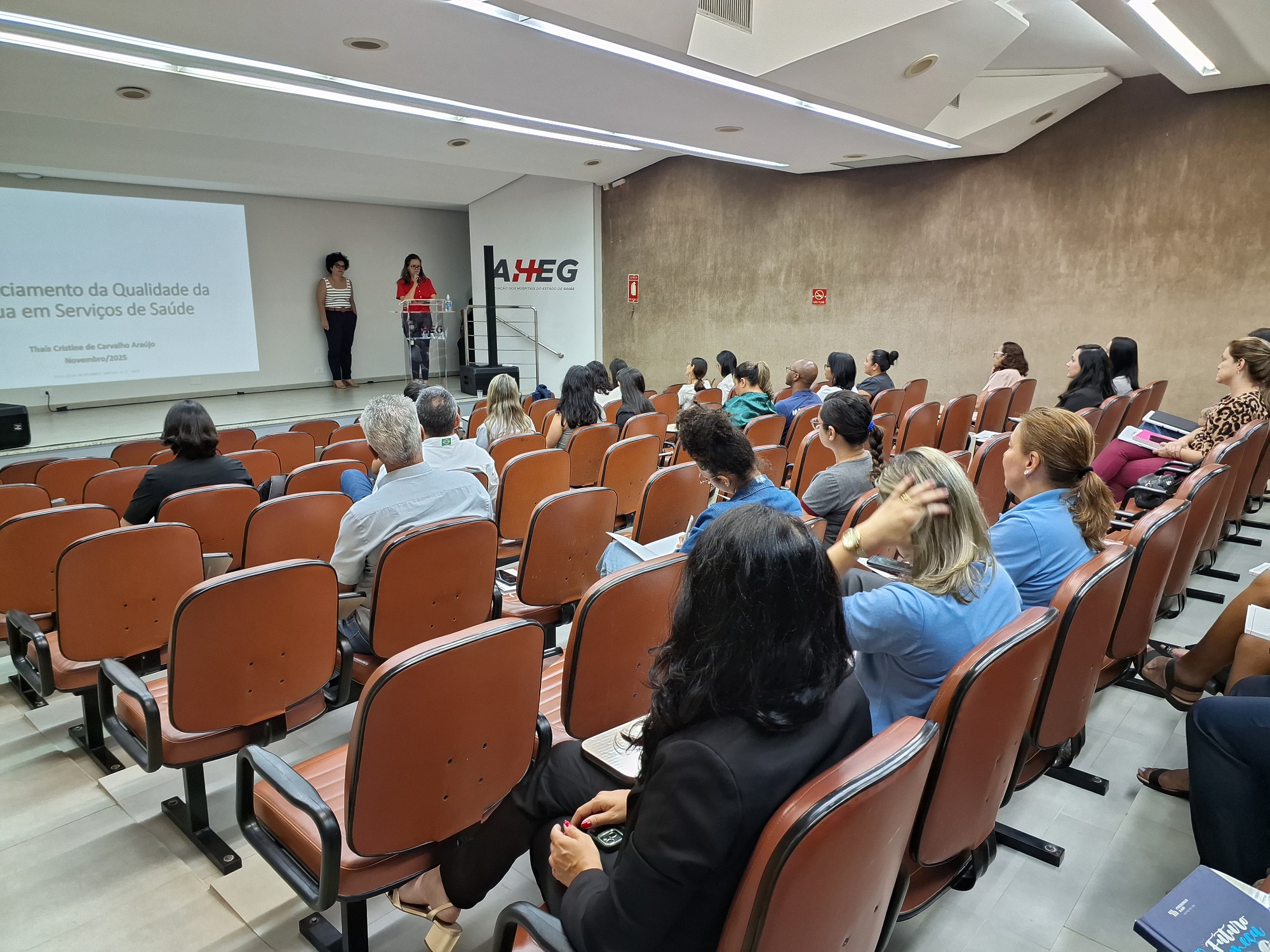 A Consultoria em SCIRAS da AHEG promoveu, no dia 13 de novembro, uma aula presencial de encerramento do seu calendário de palestras de 2025. Gratuita e exclusiva para profissionais de saúde associados, a atividade aconteceu em colaboração com a Vigilância Sanitária e Ambiental de Goiânia e abordou o tema "Gerenciamento da Qualidade da Água em Serviços de Saúde".