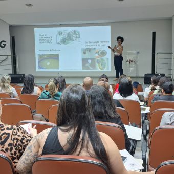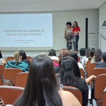 A aula foi ministrada pela farmacêutica industrial Thais Cristine de Carvalho, Mestre em Bioquímica e Biologia Molecular e Auditora Fiscal da Vigilância Sanitária de Goiânia. Ela começou sua explanação reconhecendo que o tema água é multidisciplinar, o que demanda muitos conhecimentos para entender sua dinâmica, e que realmente há poucas informações disponíveis sobre a água no serviço de saúde.